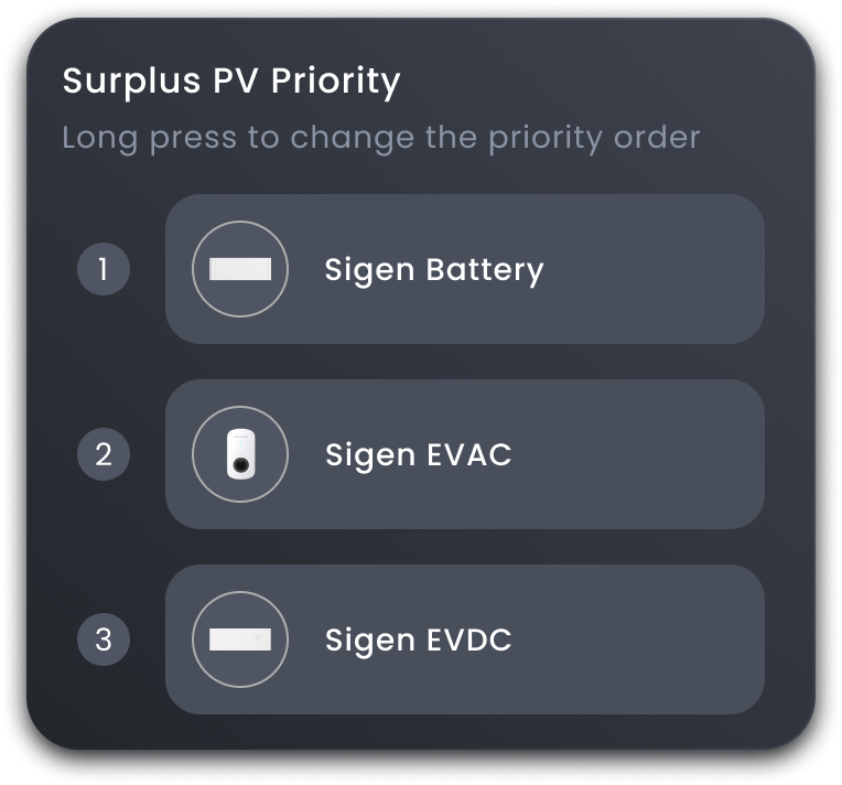 Laad electrische wagens slim op met overtollige zonne-energie. Pas de prioriteit van de overtollige zonne-energie aan om de lader en de thuisbelasting te rangschikken.